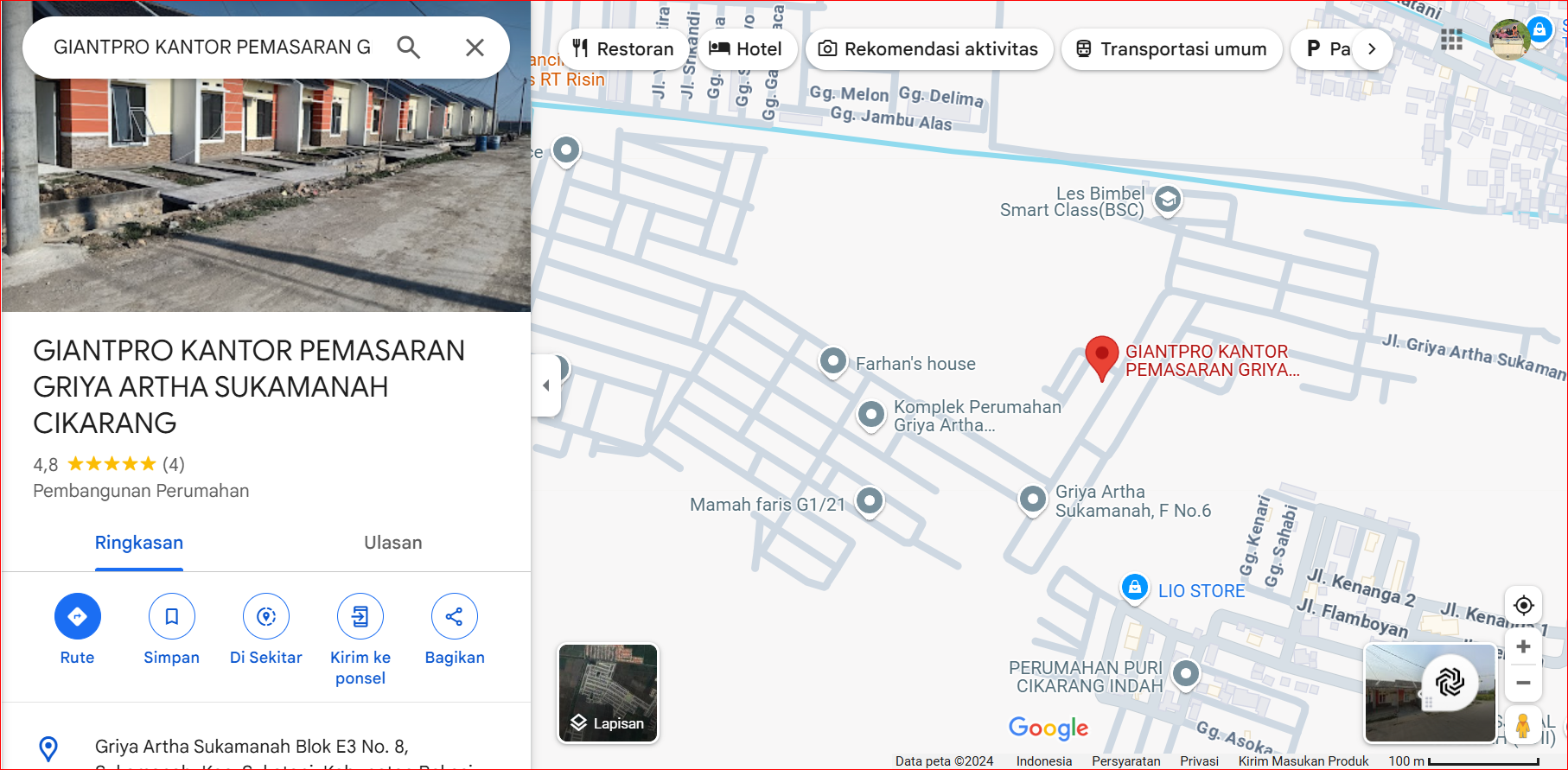 Perumahan Cinity ( Cikarang International City ) , Cluster Jatimulya Residence Bekasi Timur , Cluster Avana Residence Bekasi Timur , Griya Kapuk Indah Bekasi Timur , Bima Grove Residence Grand Wisata Tambun , Perumahan Citra Asri Town House Bekasi Barat , Cluster Vinesha Kalimalang Tambun , Kavling Delisha Cimuning Bekasi , Kavling Nova Viera Grand Wisata Tambun , Anvaya Residence Cimuning Bekasi , Kavling Asyana Tarumajaya Bekasi , Cluster Evergreen Setu Harvest City , Firdaus Residence 2 Setu Harvest City , Anvaya Residence Cibitung , Pandawa Residence Gabus Tambun , Pandawa Royal Tambun , Amnan Living Condet , Granada Residence 3 Cibubur , Alma Villa Depok , Wira Town House Bogor , Granada Residence 4 Jatisampurna , D’Alif Depok , Griya Artha Sukamanah Cikarang , Green Adika Residence 2 Cikarang , Griya Mahakarya Residence Cikarang , Grand Sukatani Residence Cikarang , Griya Hasanah Kalijaya Cikarang Dan Perumahan Yang Lain