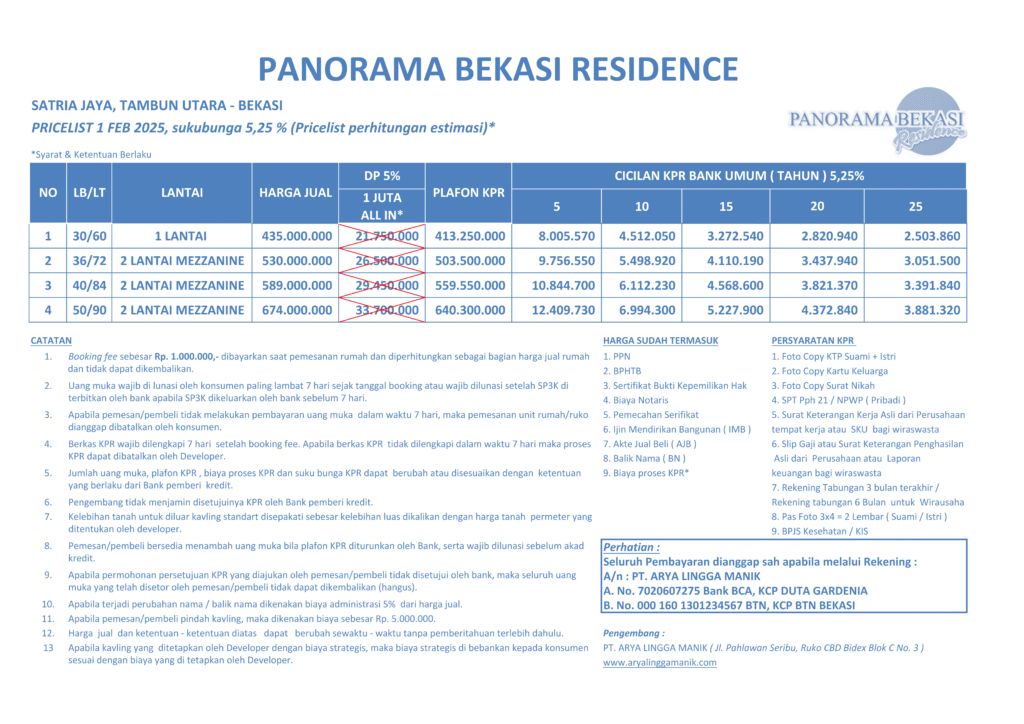 Panorama Bekasi Satriajaya Tambun Utara Tipe 36/72