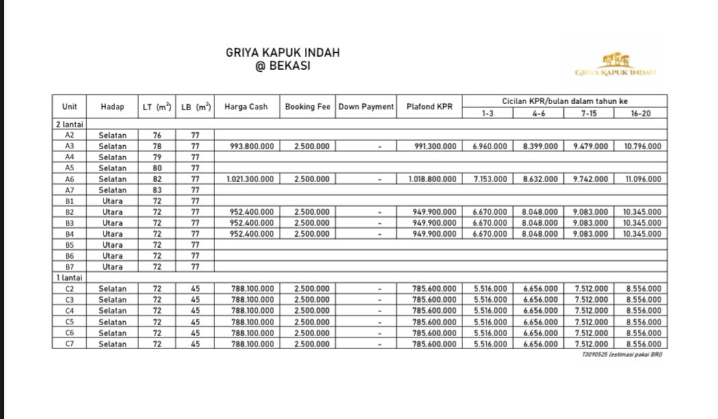 Griya Kapuk Indah Bekasi Timur 2 Lantai Tipe 77/72