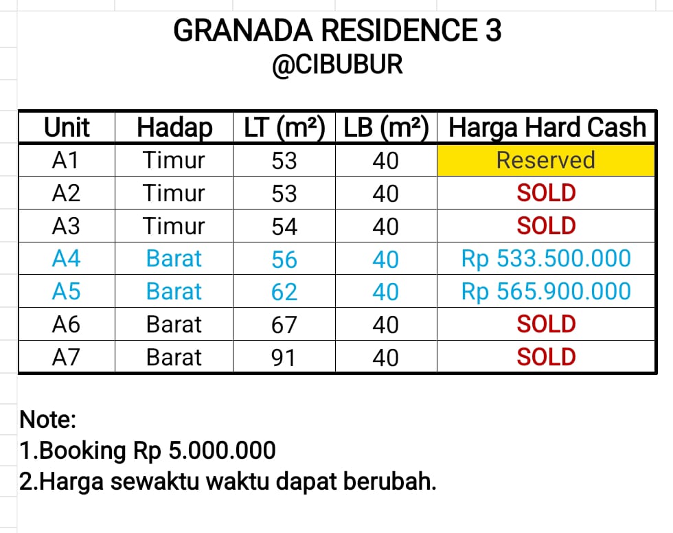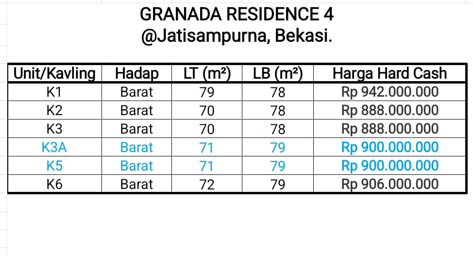 Granada Residence 4 Jatisampurna Cibubur Tipe 79/71