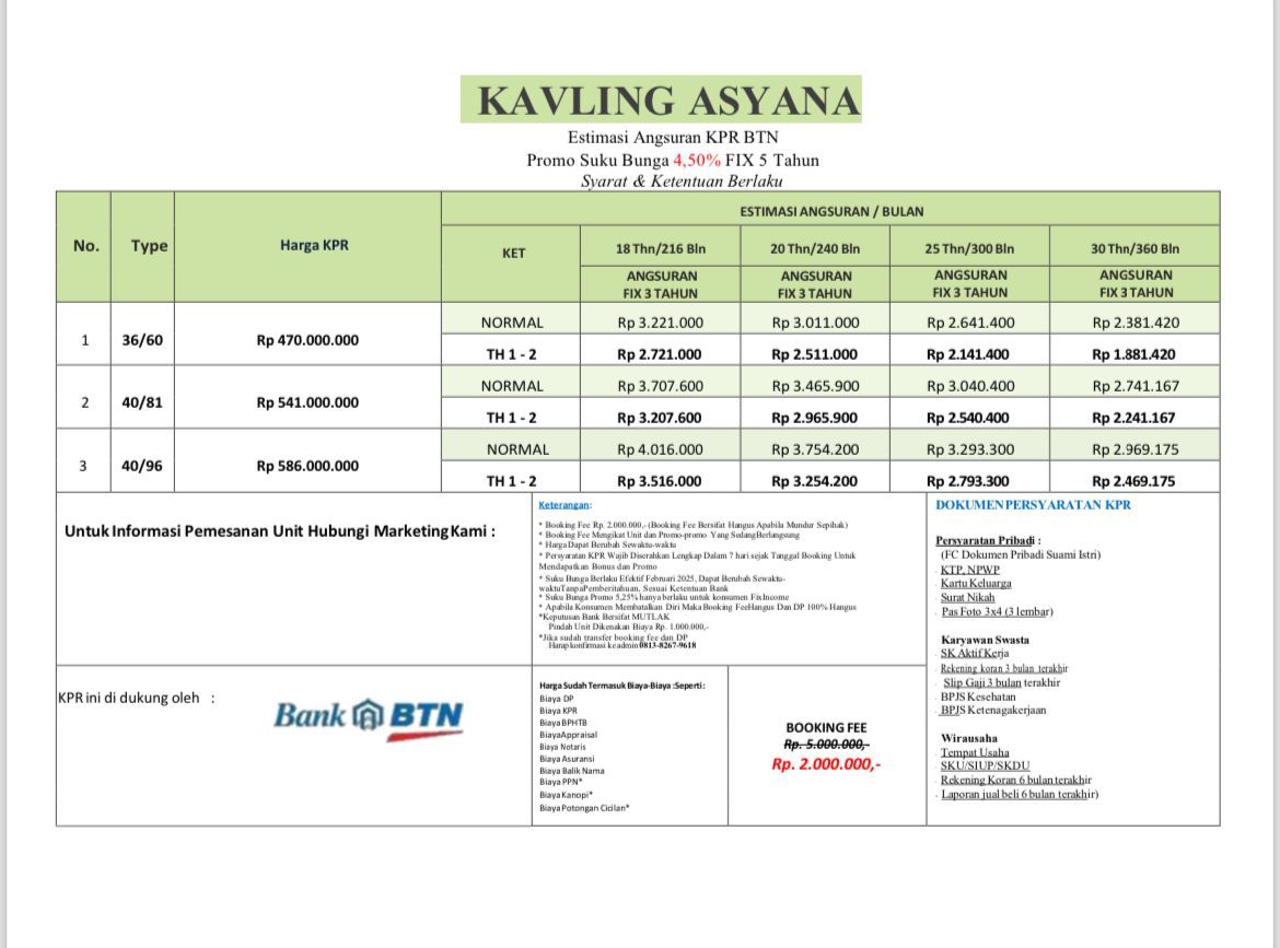 Kavling Asyana Tarumajaya Bekasi Utara Tipe 36/60
