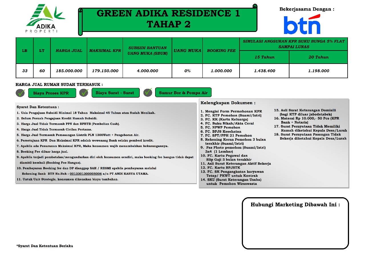 Green Adika Residence Tahap 2 Tipe 33 / 60