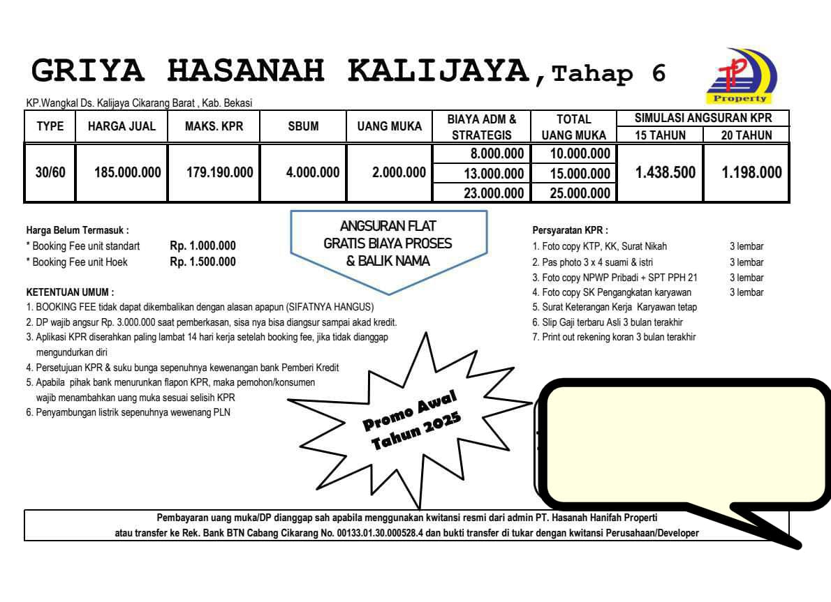 Hunian Nyaman & Terjangkau , Lokasi & Akses Mudah , 20 Menit Ke Stasiun Cikarang & SGC Mall Cikarang.
